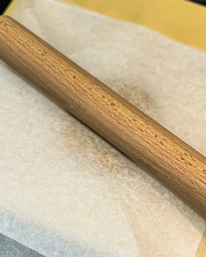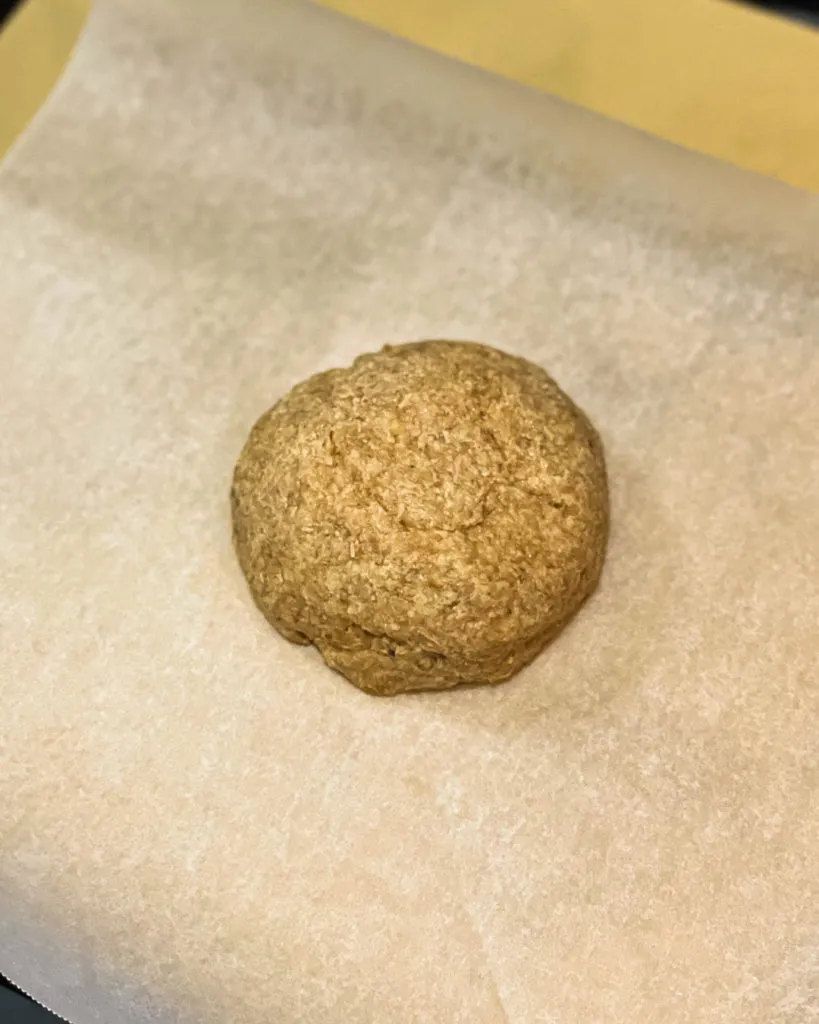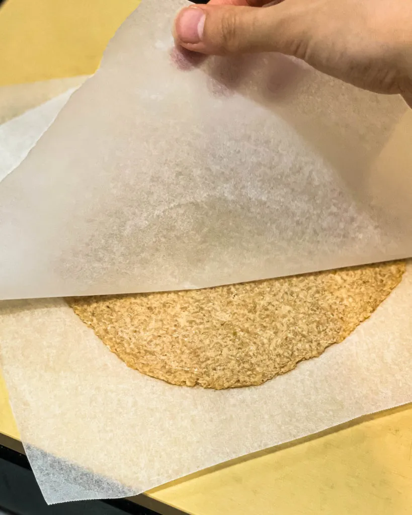 - Remove the parchment paper on top and reuse it for another dough ball and repeat the shaping step.