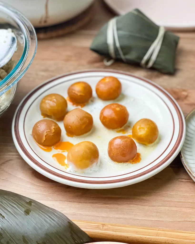 Separate the salted duck egg whites and yolks. The egg yolks will be used in this recipe and you can reserve the whites for other dishes.