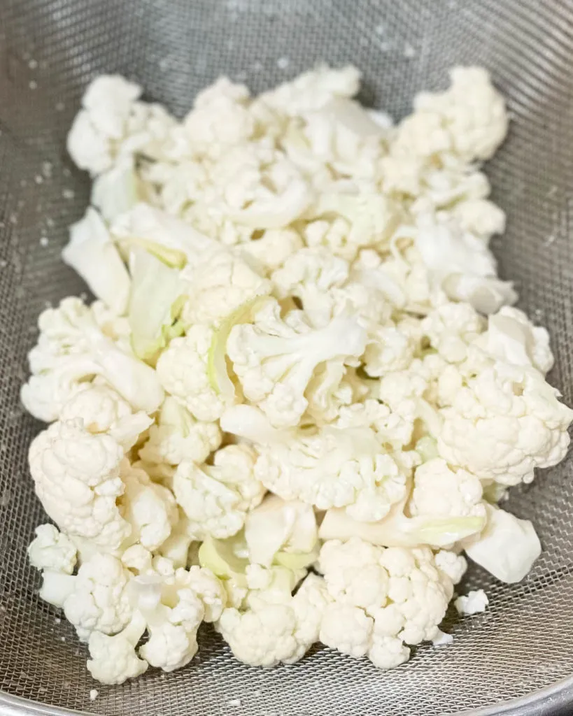 - Cut the cauliflowers into small florets. Chop the stems and leaves into smaller pieces. You may discard them if you do not want them.