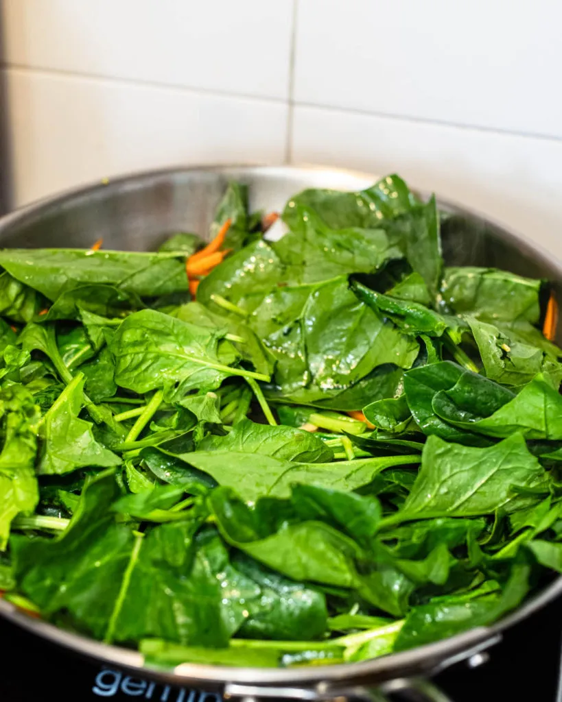 - 180 grams spinach (6 cups, cut shorter)